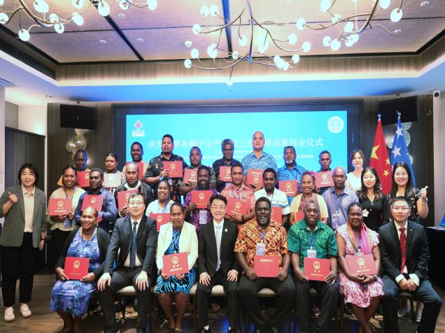 据悉,为期20天的“所罗门群岛椰子生产与加工技术培训班”聚焦椰子种植、病虫害防控与深加工等关键领域,融合理论授课、田间实操和企业参访,切实促进了中方先进农业技术与所方发展需求的精准对接。所罗门群岛农业部部长Franklyn Derek Wasi、工商部常务秘书Riley Henao Mesepitu等8位高级官员参与部分课程内容并出席相关活动,展现出对中所农业合作的高度重视。学员们不仅掌握了实用技术,也加深了对中国文化的理解,并与中方专家建立了深厚友谊。此次培训是中所落实“一带一路”倡议、深化热带农业合作的有力实践,为推动双方产业发展与技术交流奠定了坚实基础。