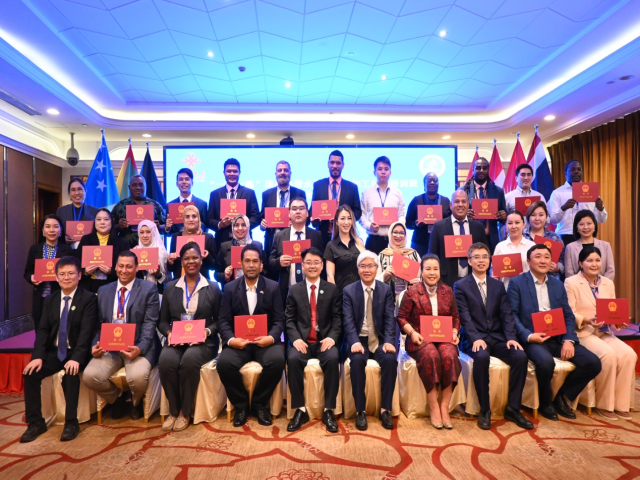 来自所罗门群岛的太平洋岛国学员代表Jorge Singatai Puia衷心感谢中方团队的专业指导,通过对中国现代化发展经验探讨、科研机构和企业考察,深入学习了农业技术应用与扶贫经验,同时代表所罗门群岛伦贝尔省与海南省政府签订友好省际关系,将进一步推动两国热带农业合作交流。