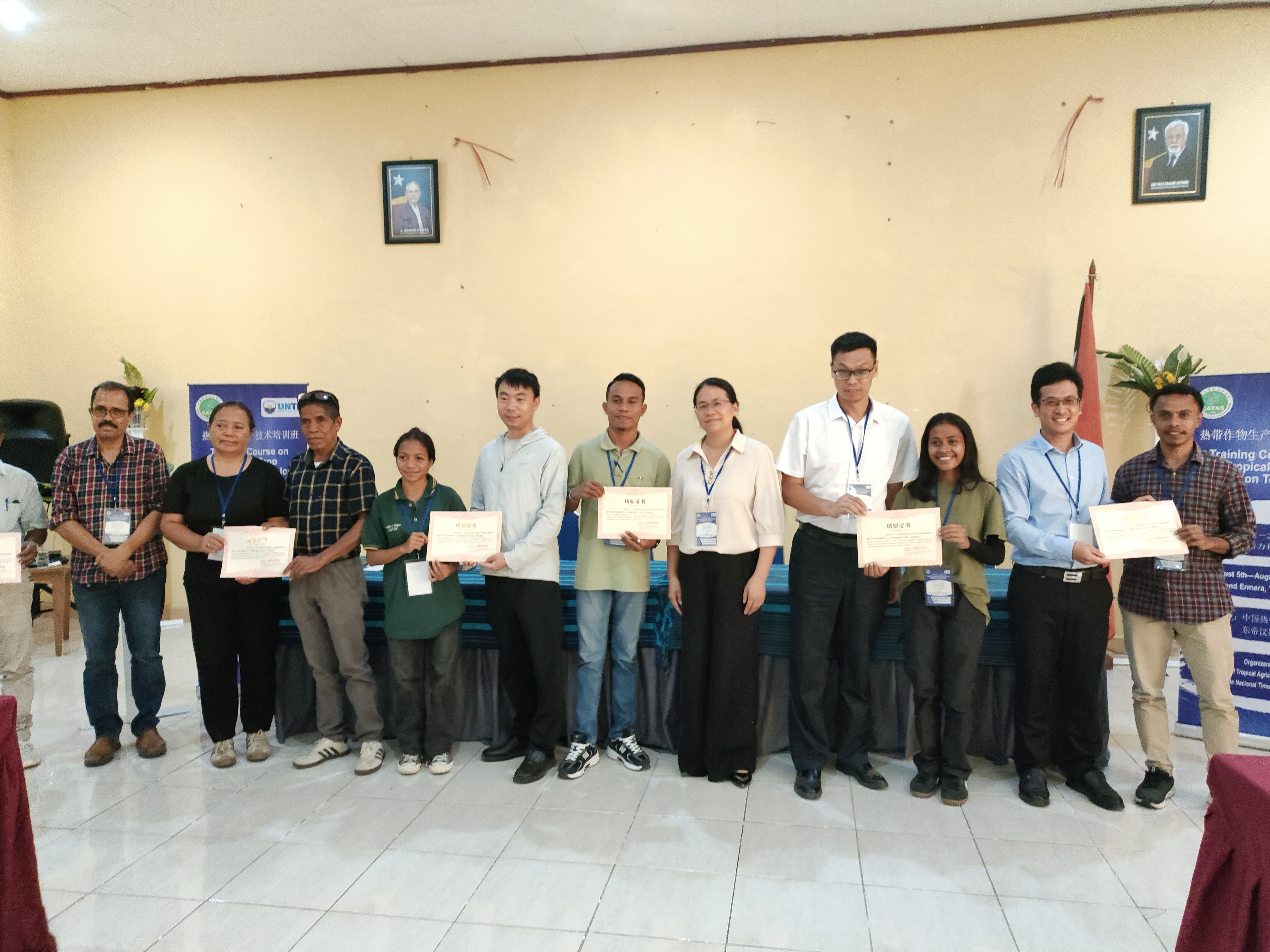 8月5日至7日,中国热科院专家组一行4人赴东帝汶,与东帝汶国立大学共同举办热带作物生产技术培训班。中国驻东帝汶大使馆参赞赵锁成、东帝汶国立大学副校长托梅(Tomé Xavier Jerónimo)、中国热科院专家组以及参训学员等50余人参加了开班仪式。