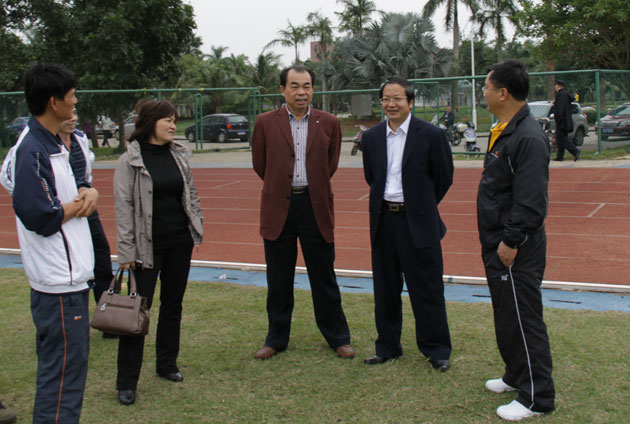 王庆煌院长和刘康德书记率队来到足球场