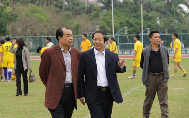 12月8日,王庆煌院长和海南大学刘康德书记各率一支由中青年干部职工组成的足球队,在城西大学生运动场举行了一场别开生面、精彩纷呈的职工足球友谊赛。