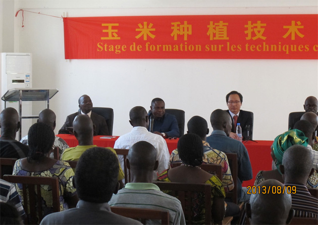 8月9日,援刚果(布)农业技术示范中心玉米种植技术培训班举行开班仪式。刚果(布)农牧业部部长马本 杜、相关部门领导、示范中心刚方工作人员、中方专家、17名来自刚果(布)北方6省的学员及刚方主流媒体等参加开班仪式。