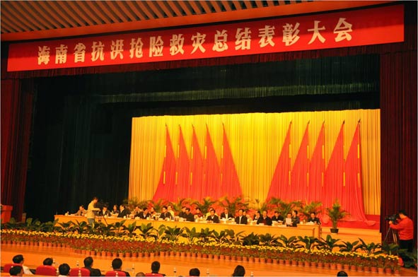 总结表彰大会后,实验站书记明建鸿鼓励全体职工,虽然抗灾救灾工作结束了,作为海南建设的一份子,我们要继续发扬抗灾救灾精神,为全面推荐海南国际旅游岛建设而努力。