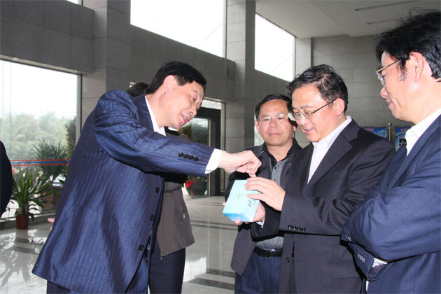 彭明所长向贾主任介绍生物所科技产品“醉无忧”