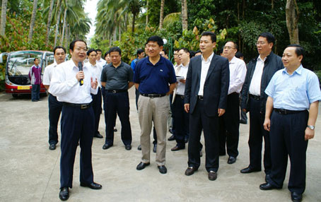 李宪生副书记一行考察了香饮所兴隆热带植物园,并与王庆煌院长及香饮所领导、专家进行座谈。他强调,“绿化宝岛”对低碳经济、循环经济、林业经济的发展,具有十分重要的意义,是功在当代、利及千秋的事业。他充分肯定了我院开展“绿化宝岛”行动取得的成绩,希望我院充分发挥科技和人才优势,为海南天敌产业、彩叶产业、四棱豆产业、青皮林保护、香料产业发展提供更加强有力的科技支撑。一是天敌产业,要争取把利用天敌进行农业害虫防治列入海南省重点支持项目。二是彩叶产业,选择一批适合在海南生长、色彩艳丽的植物,作为城市公园及城区道路两侧绿化美化树种,广为种植。 三是四棱豆产业,要以万宁市为示范点,建立1000亩左右的试验示范基地,推广辐射到海南省的其他市县。四是青皮林保护,要加大对礼纪青皮林自然保护区的投入,逐步扩大青皮林的种植面积。五是香料产业,要加大投入,做强做大热带香料产业。