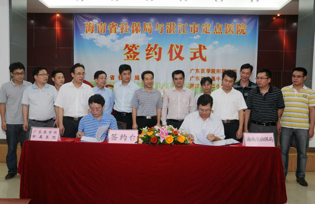 4月12日下午,海南省社保局与湛江市三家定点医院在我院加工所隆重举行了异地就医结算服务协议签约仪式。张万桢副院长专程陪同海南省社保局王卓局长一行前往湛江出席。