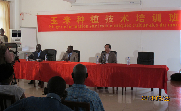8月22日,为期半个月的“玉米种植技术培训班”在中国-刚果(布)农业技术示范中心落下帷幕。刚果(布)农牧业部部长马 本杜、农牧业部各部门领导、示范中心刚方工作人员、示范中心中方相关专家及刚果(布)主流媒体出席结业典礼。