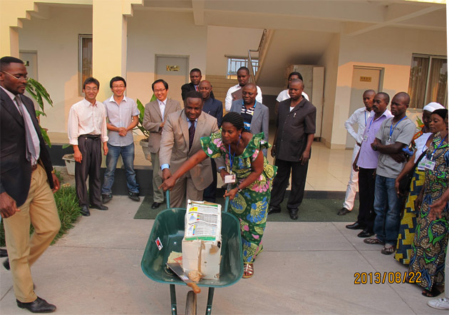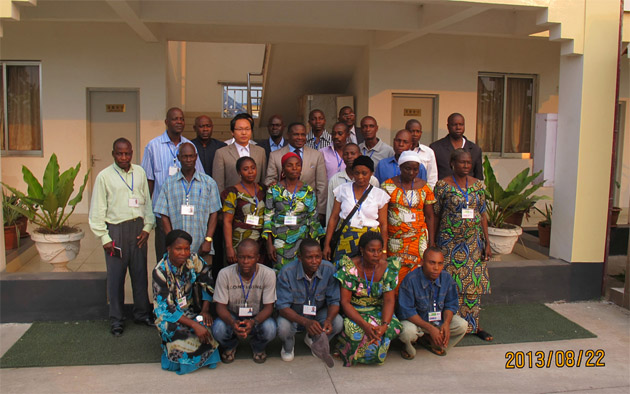示范中心专家组组长周泉发回顾了半个月来和学员们一起度过的快乐时光,如:从来没有使用过空调和电热水器的学员第一次尝试使用了城里人的先进家用电器;每天品尝牛奶、咖啡和美味的刚果河鱼;观看大屏幕电视节目;国庆晚会上欢快的舞蹈以及醉人的当地啤酒Primus等等。他希望通过学员们的辛勤耕耘,逐步改变刚果(布)玉米供应现状。