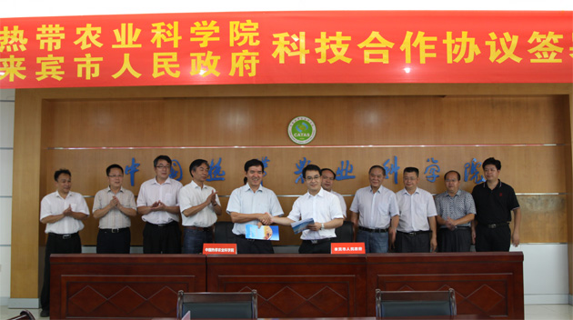 9月24日,我院与广西来宾市人民政府在海口院区签署了科技合作协议,刘国道副院长和皮介郑副市长分别代表双方在协议上签字。