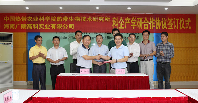 海南广陵高科实业有限公司是我国南繁区的一家核心育制种企业。目前,海南广陵高科实业有限公司与生物所在海南省重大科技专项等产学研合作项目方面已开展密切合作。此次战略合作协议的签订,将进一步深化科研单位与生产企业的合作,特别是在建立南繁区生物安全服务平台、培养南繁生物安全服务团队和打造南繁生物安全服务品牌方面提供良好的合作基础,为建设“国际旅游岛”建设提供有力支撑。