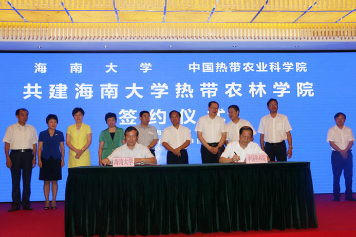 7月9日,海南大学热带农林学院在儋州宝岛新村揭牌,宣告海南大学热带农林学院正式成立。为扶持海南大学热带农林学院更快更好发展,当天下午,海南省人民政府分别与农业部、国家林业局签署共建协议,海南大学分别与我院、福建农林大学、儋州市人民政府、海南省农业科学院签订了共建协议。王庆煌院长出席了揭牌和签约仪式,并作了讲话。
