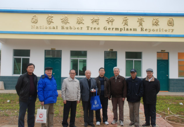 1月12日,原橡胶所育种老专家陈河楷、郑学勤、吴运通、曾献松、王泽云、黎德舜到橡胶所参观考察。