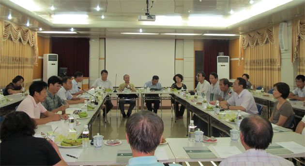 在品资所,戴昌贤副校长一行与品资所相关专家进行座谈,陈业渊所长主持了座谈会,陈松笔副所长及品资所果树、蔬菜、花卉、南药、畜牧和生物技术领域相关专家参加座谈会。双方专家们介绍了各自研究单位的发展历程、研究方向,并就芒果、香蕉、木薯、花卉、蔬菜和休闲农业观光建设等方面进行了学术交流讨论。会后,台湾专家一行参观了品资所相关基地和实验室。台湾专家表示,双方研究领域和优势各有特点,今后要加强与我院以及品资所的合作和交流,共同促进学术进步和产业技术的提升与升级。