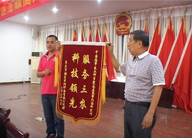 重庆江津农业龙头企业给南亚所龙眼研究团队赠送锦旗,感谢研究团队的科技支撑