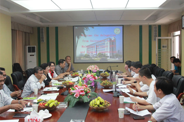 会上,Chan Lai-keng教授介绍了植物次生代谢物质组培系统。Ahmad Sofiman Othman院长介绍了马来西亚理科大学生物科学学院的情况,易克贤所长对环植所的组织构架和科研情况进行了详细介绍。双方就感兴趣的合作领域展开了热烈讨论。大家认为,马来西亚理科大学与我院存在广泛的合作空间,双方表示将加强联系,并拟定了增强橡胶植保等热带农业问题的合作。