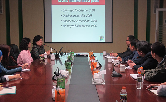 12月10日,泰国农业部植物保护研究与发展中心的生物防治专家Amporn Winotai教授和Saowanit Popoonsak博士一行到环植所进行学术交流。刘奎副所长、蒲金基副所长、符悦冠研究员等相关人员参加了本次学术交流会。交流会上,两位泰国专家分别就“泰国入侵生物防控技术”和“昆虫生防菌研究进展”作了专题报告,并与环植所科研人员进行了深入交流。