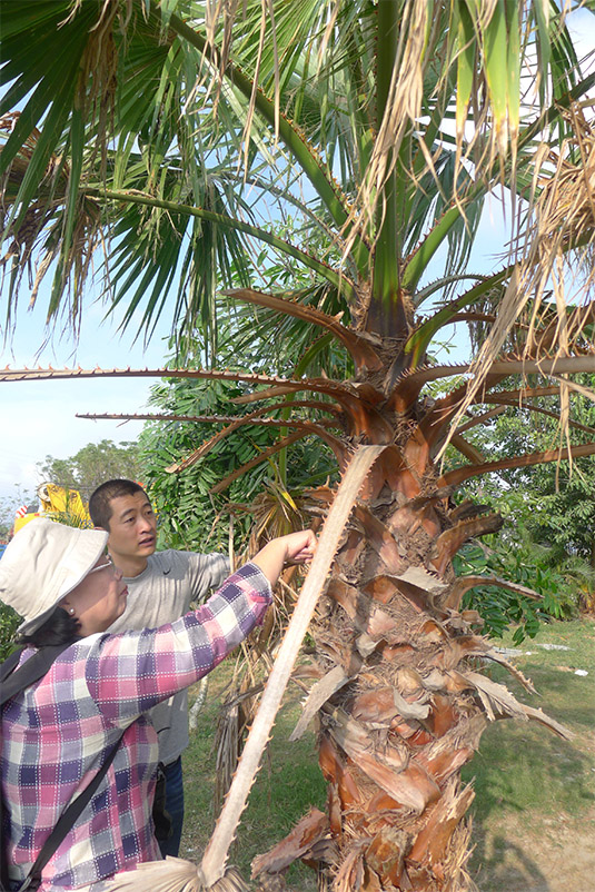 交流会后,在吕宝乾博士的陪同下,泰国专家还先后对儋州、三亚等地的螺旋粉虱、椰心叶甲、椰子织蛾、红棕象甲等重要入侵害虫的危害情况进行了实地考察;并参观了椰心叶甲、橡副珠蜡蚧及其天敌椰甲截脉姬小蜂、阔柄跳小蜂的规模化人工饲养技术,对新入侵害虫——椰子织蛾的人工饲养及防控技术问题进行指导,提出许多宝贵意见。