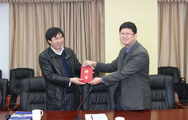 为进一步深化与加强双方在植物线虫方面的合作研究,彭德良研究员被环植所聘为特聘研究员,易克贤所长为其颁发了聘书。