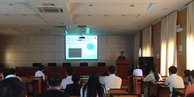 10月31日,泰国橡胶研究所育种专家Wittaya Promme博士在橡胶研究所报告厅做了题为Overview of Rubber Research Institute of Thailand(RRIT)的学术报告。