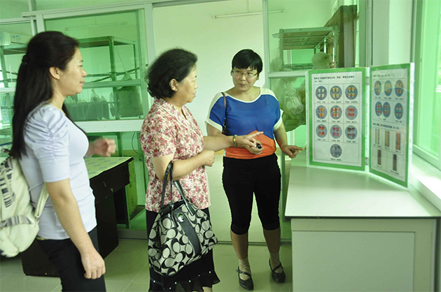 在植物新品种测试(儋州)分中心测试基地和实验室,马淑萍副局长仔细听取了分中心近三年的发展概况、测试与研究工作进展、工作设想等情况的汇报,她指出,一定要严把测试工作的质量关,严格控制一致性判定的尺度,测试结果一定要经得起社会的考验。此外,要加快做好热区植物测试指南的研制,为实行91文本的保护制度做好技术储备。她希望农业部植物新品种测试儋州分中心立足自身优势,借助品资所丰富的资源平台,取长补短,加强业务水平,稳定专职测试人员队伍。