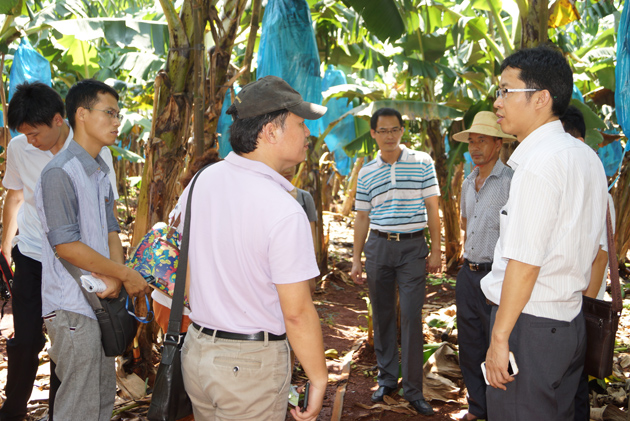 专家组向皇桐镇80多位农业种植户传授了番木瓜、香蕉等热带果树的生产技术。培训结束后,专家组还到武维村和武城村开展下乡服务。村路崎岖,专家组顶着正午烈日步行到田间,仔细勘察植株情况,为农户提供指导。